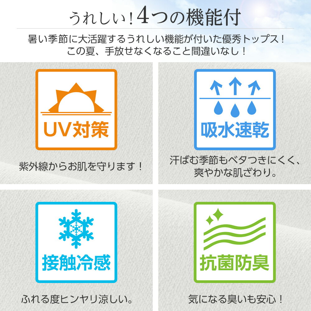 【嬉しい4つの機能付】<UV対策>紫外線からお肌を守ります!<吸水速乾>汗ばむ季節もベタつきにくく、爽やかな肌ざわり。